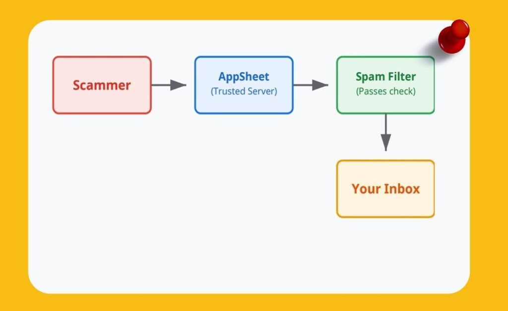 Many of these emails are sent from addresses like “noreply@appsheet.com,” which makes them appear trustworthy.